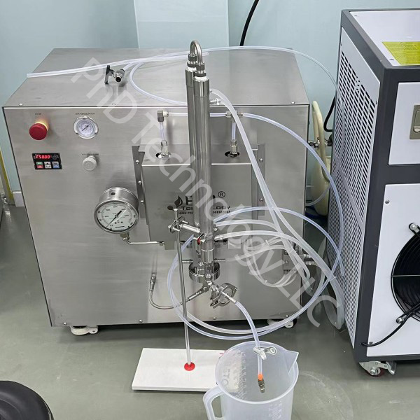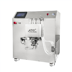 應用概況:主要應用于脂質體、乳劑等物料的粒徑減小與均一化,去除產品中的顆粒和沉淀,減小脂質體及乳劑粒徑達到納米級,以便于無菌過濾和分子生物動力學研究。